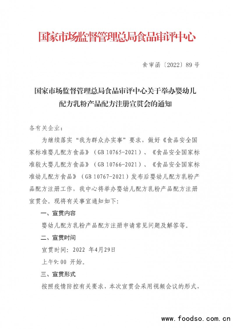 国家市场监督相关食品资讯监督管理相关食品资讯管理总局食品相关食品资讯食品审评中心关于举办婴幼儿配方乳粉相关食品资讯婴幼儿配方乳粉产品配方注册宣贯会的通知